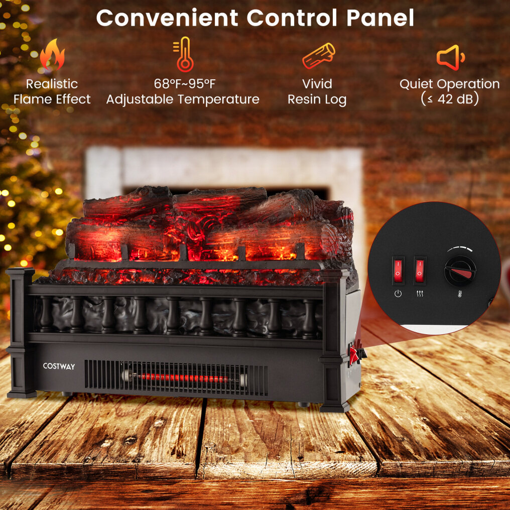 ● Convenient Control Panel: The electric log heater is equipped with a functional control panel, where you can easily turn on or off the flame and heat. The adjusting knob allows you to control the temperature effortlessly.