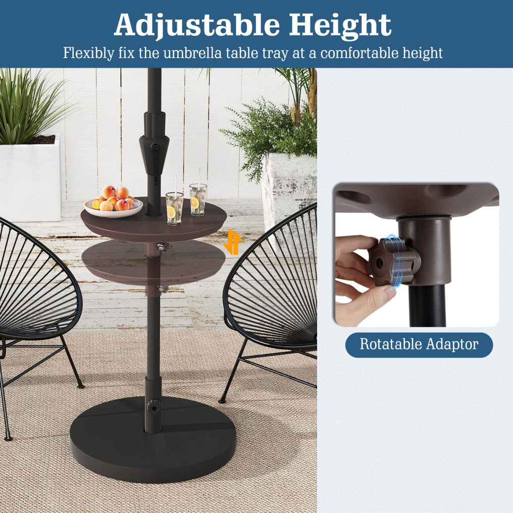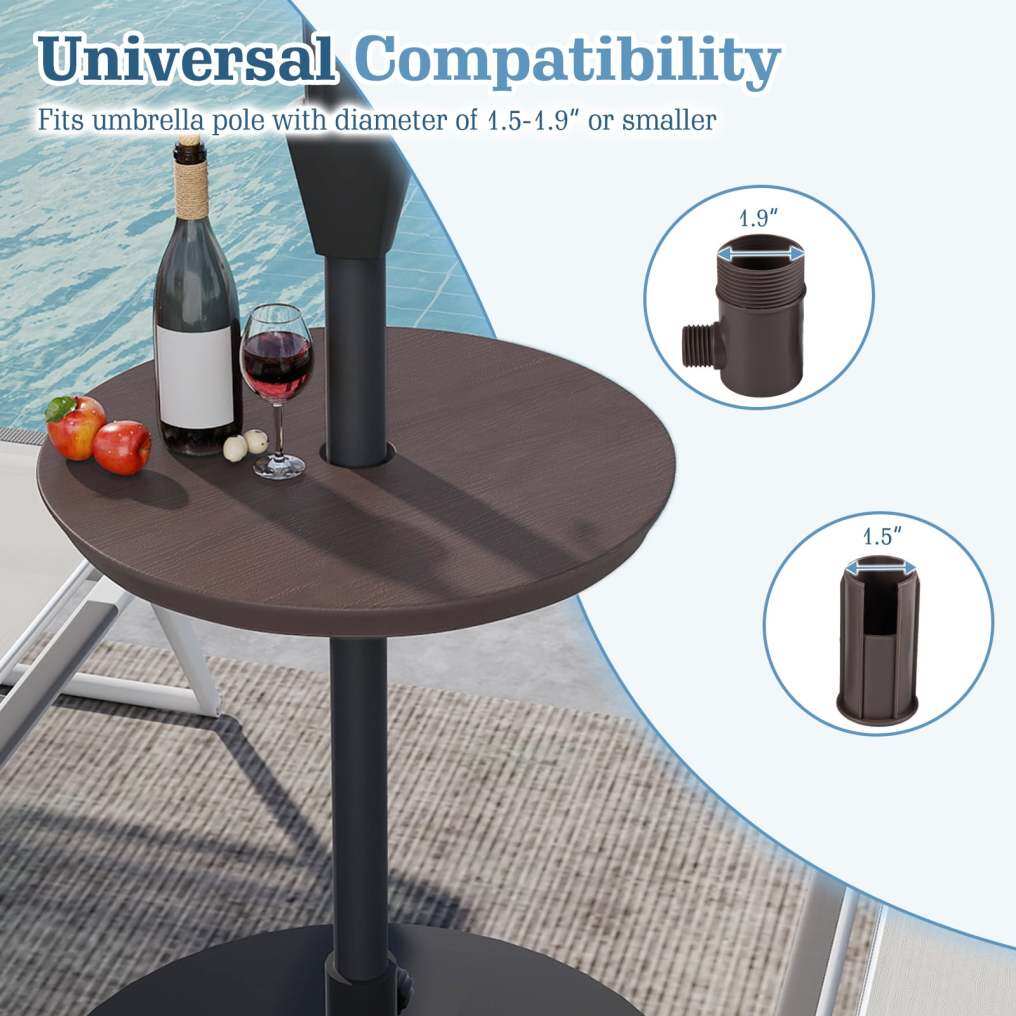 20 Inch Outdoor Adjustable Umbrella Table for 2 Sizes Patio Umbrella Pole-Coffee