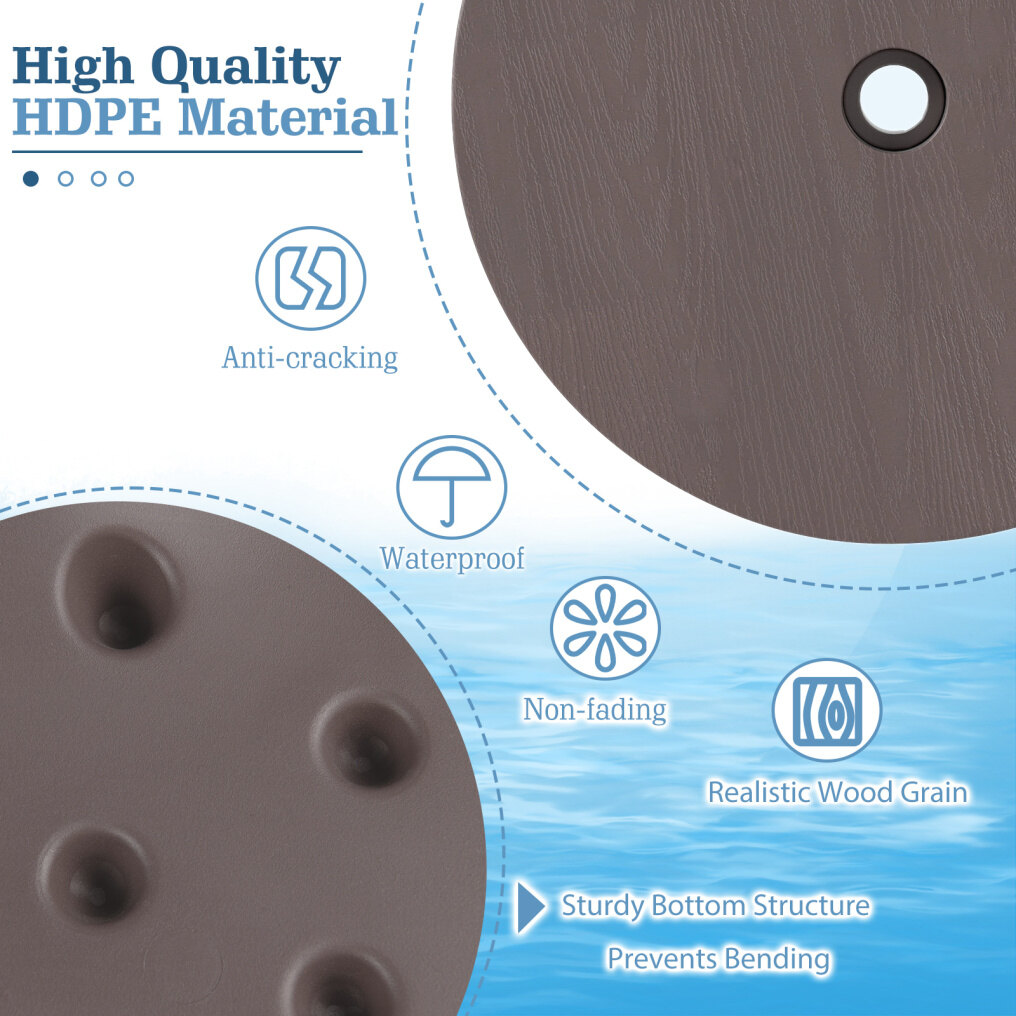 Weatherproof HDPE Structure: Made from tough HDPE material, this umbrella table tray is completely waterproof, resistant to fading, and will not crack from outdoor exposure. Additionally, cleanup is effortless with a quick wipe.