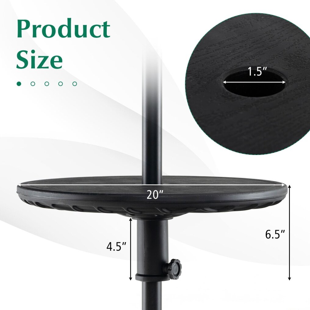 ● Wide and Height Adjustable Design: The 20" umbrella table provides sufficient space to keep your drinks, phone and snacks in place. Equipped with an adaptor to tighten the umbrella, the patio umbrella tray fits the patio umbrella with 1.5" pole. In addition, you can set the round table tray at any height you prefer.