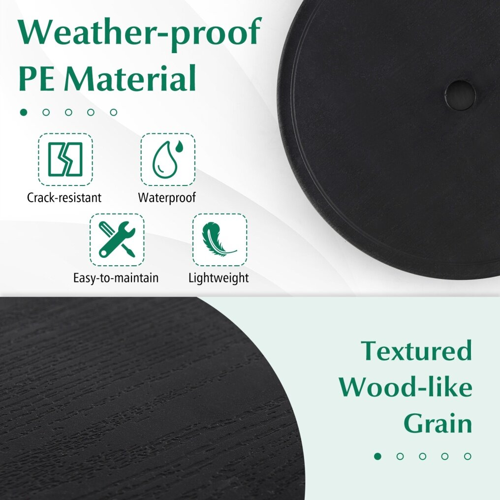 ● Elegant Outdoor Addition: Boasting simulated wood grain on the surface, the adjustable umbrella table can seamlessly complement with your outdoor setting, such as backyard, poolside, beach, garden and patio.