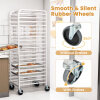 ● Smooth and Silent Rubber Wheels: The sheet pan rack features 4 smooth rubber wheels that enable you to move it effortlessly. What's more, 2 of these wheels are designed with brakes to enhance stability and security.