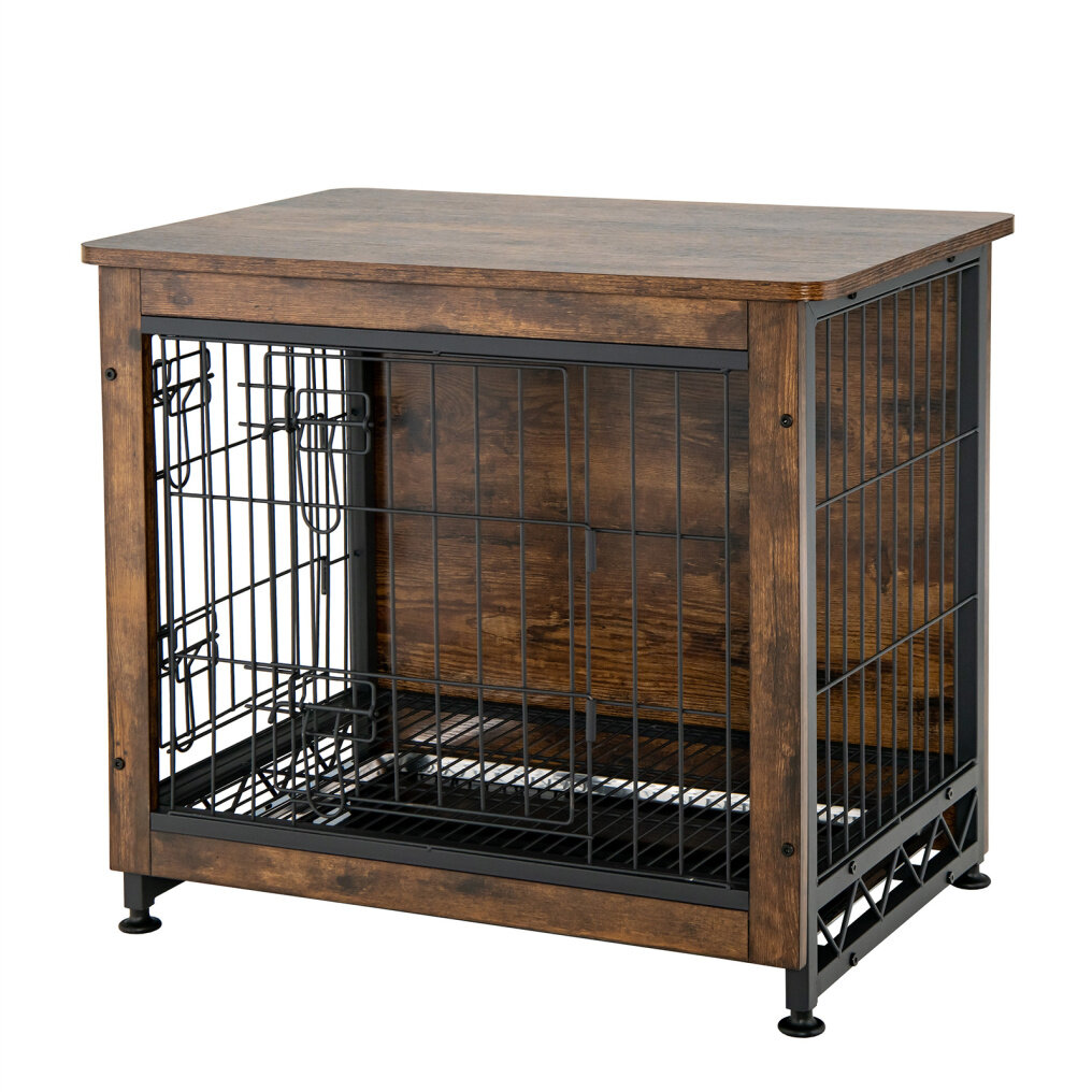 Elegant Home Furniture: Thanks to the industrial wood grain table top and simple metal frame, our dog crate can not only serve as a resting place for your puppy but also become an elegant decor in your home. It can be used as a side table next to a sofa or bed, which can accommodate computers, snacks, potted plants, etc.