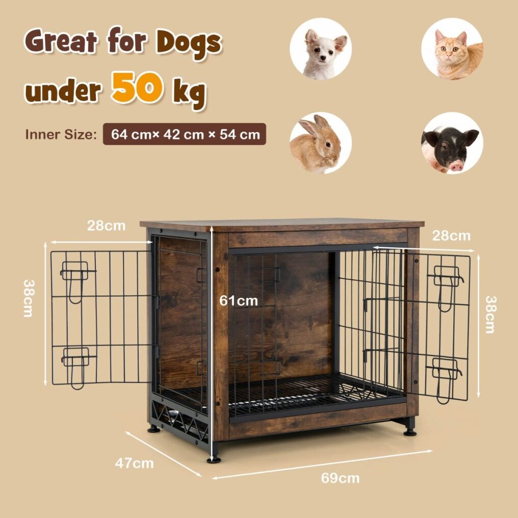 Safe & Stable Construction: This small dog crate is made of high-quality engineered wood and metal frame, which is sturdy enough to hold up to 50kg. And the edges of the multifunctional crate are rounded to avoid hurting the puppies when they move around. In addition, the bottom of the crate has non-slip pads to prevent scratching the floor while helping the crate remains stable on uneven floors.