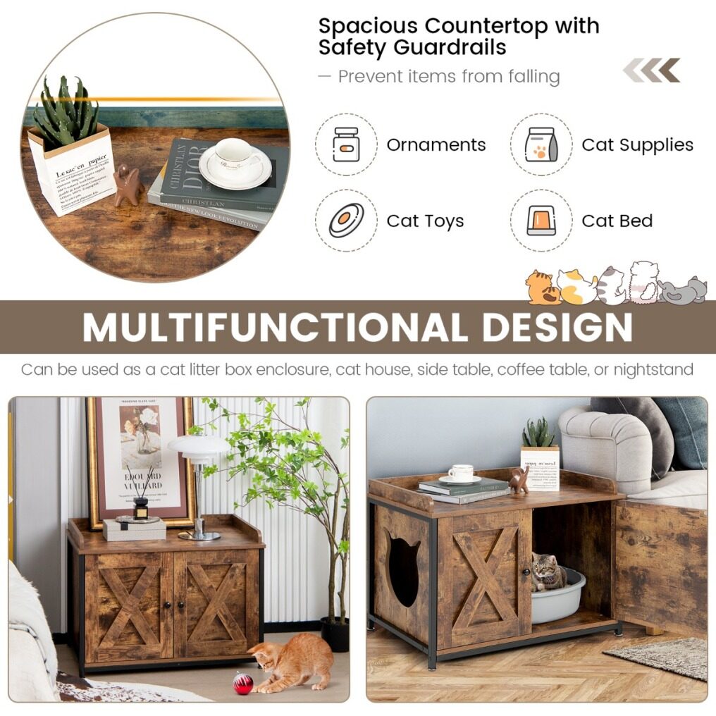 Multifunctional Design: This multifunctional wooden cabinet can not only be used as a cat litter box enclosure or a cat house, but also served as a nightstand, end table, side table, coffee table, or entryway table, meeting your multiple needs. The large tabletop provides enough space for cat supplies and decorations.