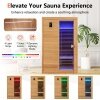 ● Humanized Design: The far infrared sauna features 4 light strips with 7 static colors and 1 dynamic lighting modes, allowing you to create the perfect ambiance. Additionally, it includes a magazine rack, towel rack, cup holder, and a foldable tray for easy access to your essentials.