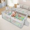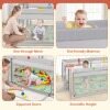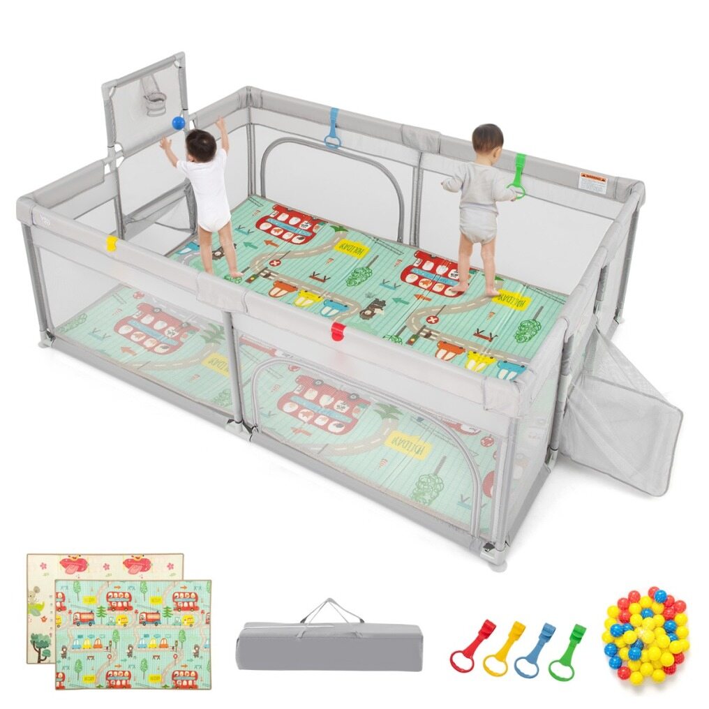 Variety of Play Ways: Including a basketball hoop, 2 soccer gates and 50 ocean balls, the large baby playpen engages children in active play and fostering their interest in sports while enhancing their motor skills. The 4 pull rings also offer support for toddlers as they practice standing.