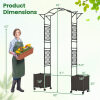 This 2-in-1 multifunctional planting set measures 207 x 40 x 250 cm (L x W x H), featuring a garden arch and 2 detachable planter boxes, each boasting a self-watering system to simplify your gardening by ensuring your plants receive just the right amount of water without the hassle. The arch is crafted of upgraded metal tubes with protective PE layers, which could effectively withstand the elements and are not easy to rust while protecting plants from burning. Standing tall at 250 cm, it provides ample support for climbing plants, making it perfect for growing vibrant flowers like roses or practical produce such as grapes and cucumbers. The added depth of the planter boxes allows for various types of deep-rooting plants, enhancing the greenery in your outdoor space. Featuring 8 universal wheels with locks, the structure can be moved or securely positioned to suit any event or layout. This versatile garden arbor trellis not only supports plants to grow vertically but also can be a decorative entrance for your garden, yard, or lawn.