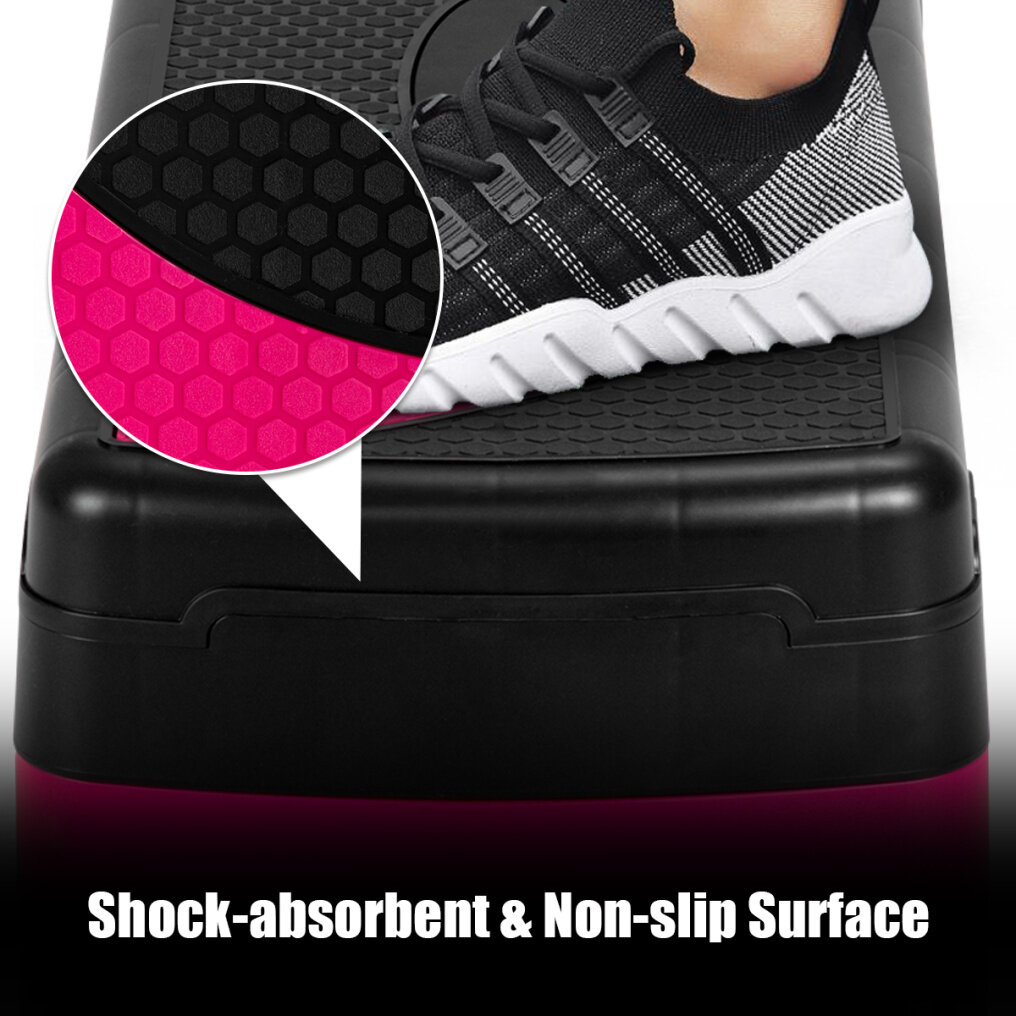 ● Sturdy and Durable Material: Made of high quality PP material, this aerobic stepper is wear-resistant and durable and is a reliable fitness tool. With its sturdy construction and strong load-bearing capacity, it can support up to 550 lbs weight, so you can exercise safely on it.