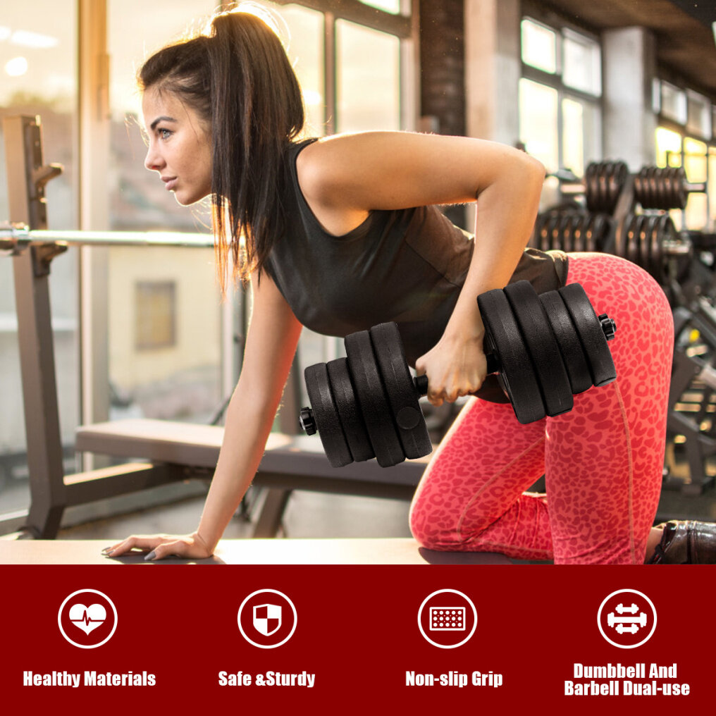 Multifunctional Use: Equipped with a connector to allow our dumbbells to be easily switched to the barbells, building strength in your legs and arms by supplementing lunges, stretching, and bending. A natural and effective way of developing your muscular mass, as well as burning extra calories.