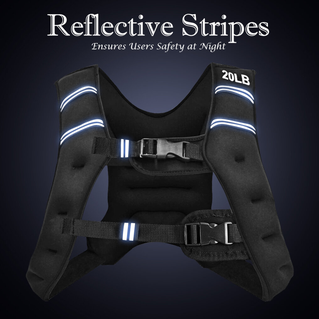 Adjustable Buckles & Reflective Straps: The weighted vest has two buckles on the front to keep it from falling off during workouts. In addition, these two adjustable buttons allow you to adjust according to your body shape. The shoulder straps and back of the workout vest have reflective strips to ensure your safety even at night.
