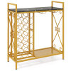 ● Stylish 35" x 15" Countertop: The wine stand features a wooden countertop with 0.6" thickness which offers ample space and bring elegance. The wood-like/marbling texture with rustic charm of the countertop complements any home setting.