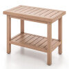 ● Premium Teak Wood: The 2-tier shower bench is made of natural teak that is prior to bamboo. The solid teak wood, which features higher hardness, water resistance and durability, adapts to the bathroom environment well.