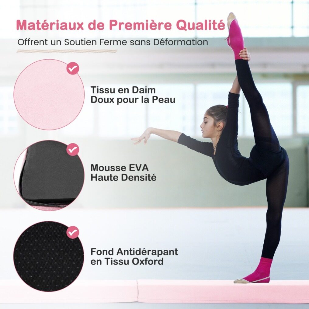 【Premium Materials】Made of high-density EVA foam, this balance beam is designed to provide firm support without deformation. In addition, the skin-friendly suede fabric provides a non-slip and comfortable surface for gymnastics practice.