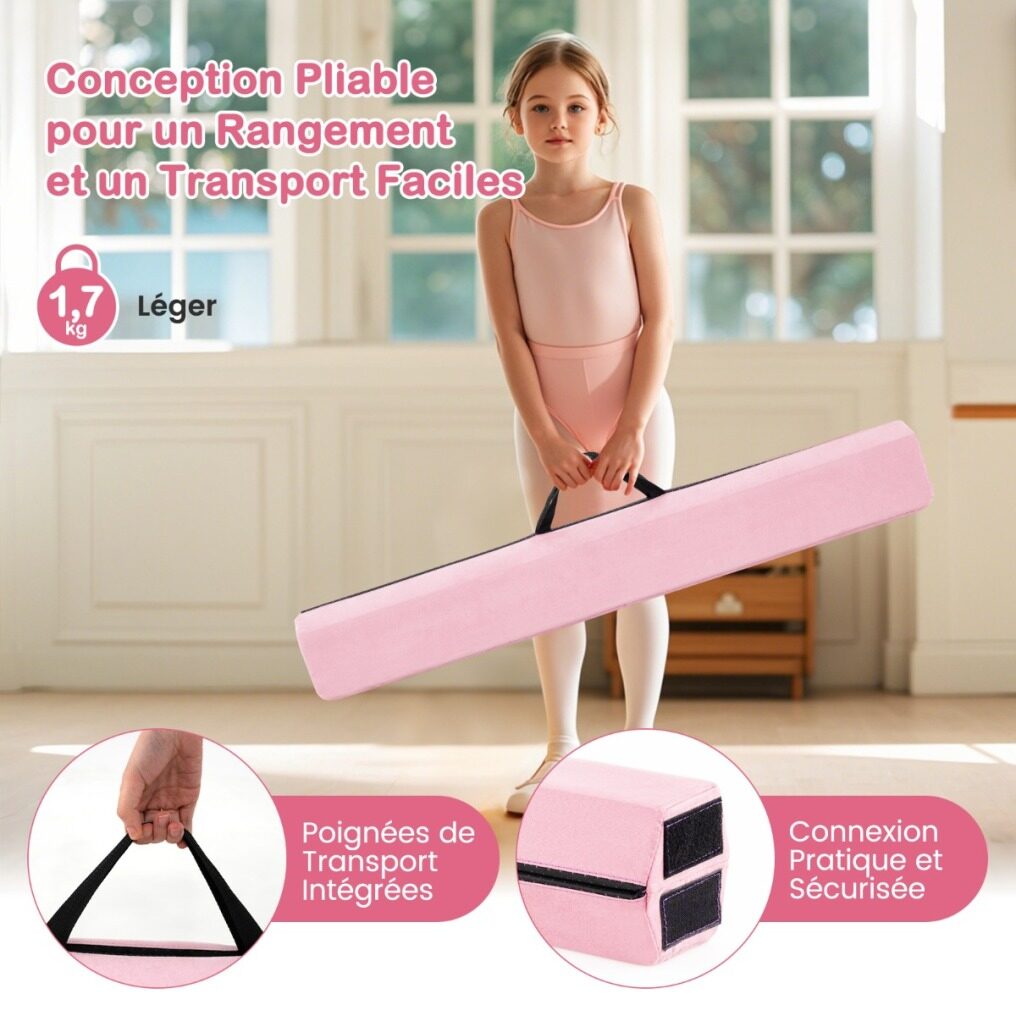 【Foldable & Portable Design】This foldable gymnastics beam allows for easy storage when not in use. In addition, with its lightweight design of 1.7 kg and built-in handles, it can be effortlessly carried anywhere.
