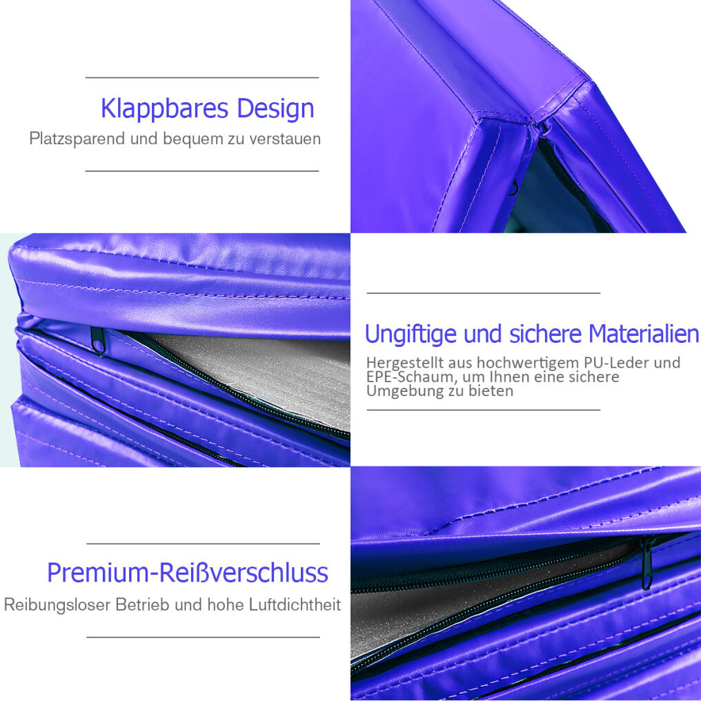 The foldable gymnastic mat consists of 4 panels and is made of high-quality PU leather cover, and built-in epe foam. The 2-inch thick gymnastic mat is comfortable and non-slip, and has high impact resistance, which is durable and effectively protects your body joints. There are hook and loop fastener on the sides of the gymnastic mat, which can be used to combine several gymnastic mats according to needs to form a larger gymnastic mat. To facilitate daily cleaning, the gymnastic mat has a built-in zipper for easy removal.