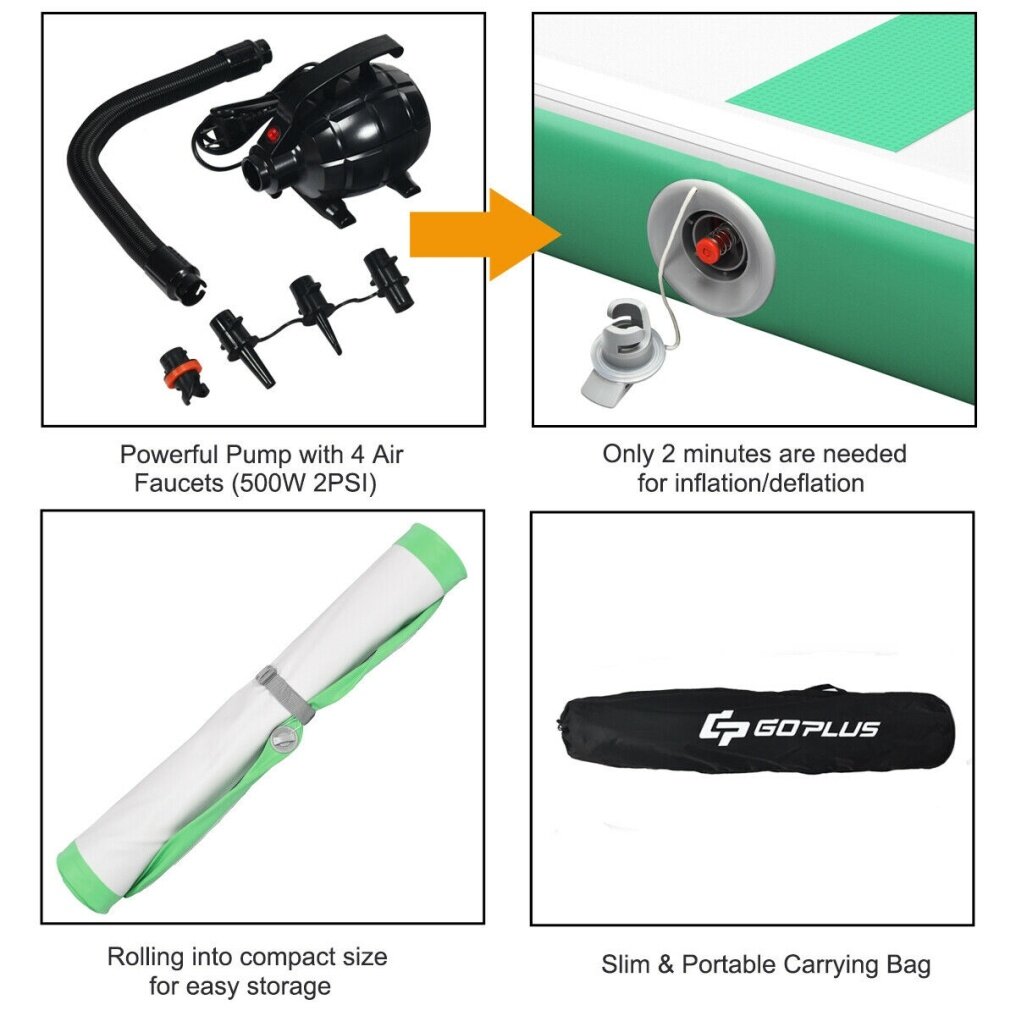 This inflatable gymnastic mat is great for gymnastics, tumbling, cheerleading, free running, stunting, martial arts, and water yoga! Don't hesitate to buy it!