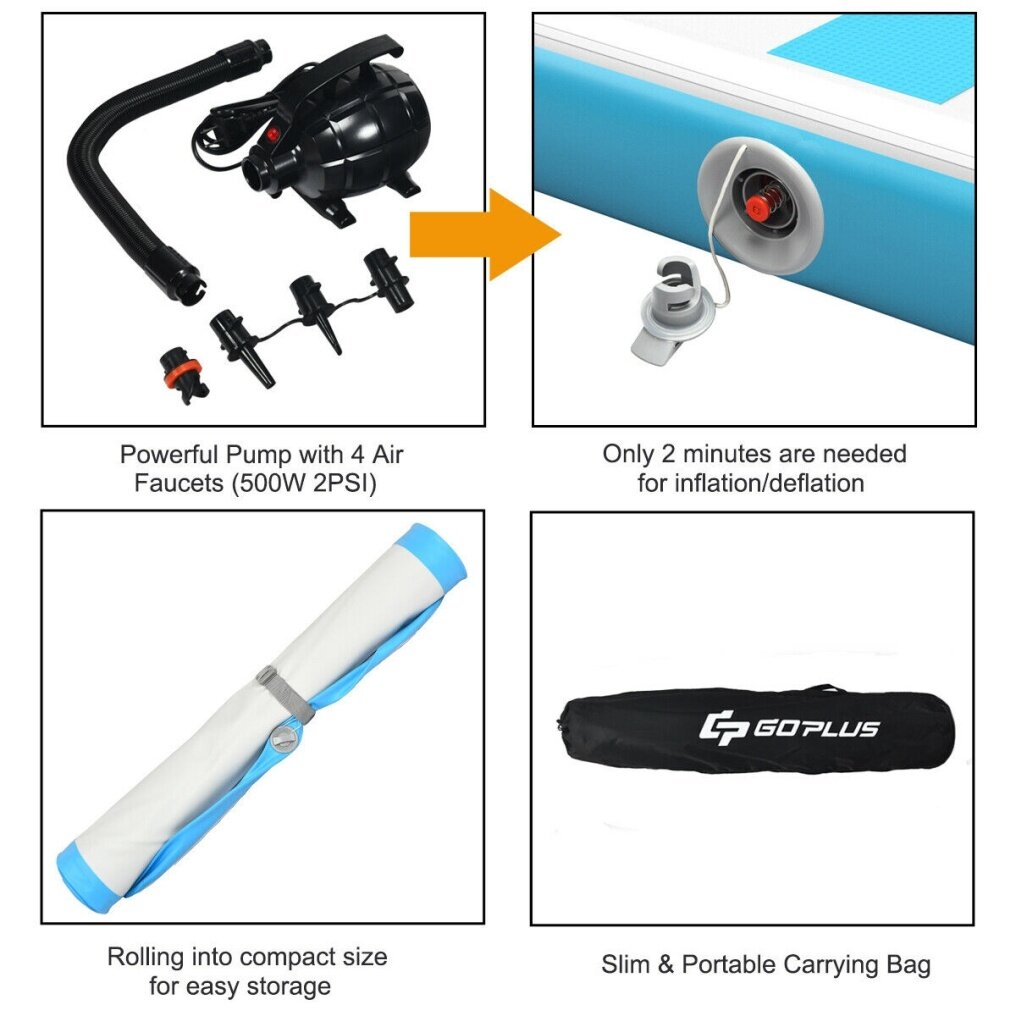This inflatable gymnastic mat is great for gymnastics, tumbling, cheerleading, free running, stunting, martial arts, and water yoga! Don't hesitate to buy it!
