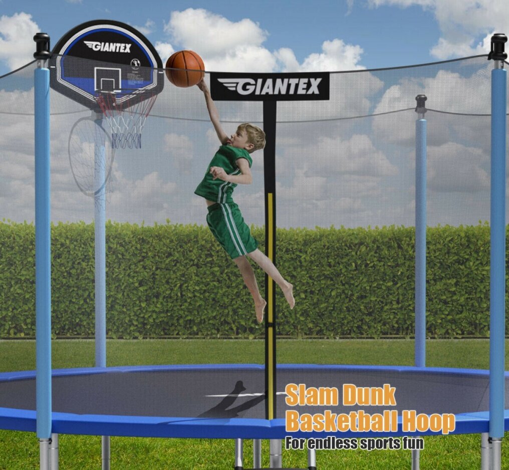 ● Double Fun with Shooting Hoop: The maximum load capacity is 375 lbs.Double the dose of fun with jumping and shooting actions. This built-in entertainment basketball hoop is specially designed to offer you different ways of entertaining. It is made of wear-resistant materials and sure to offer long-term service even after intense bouncing activities.