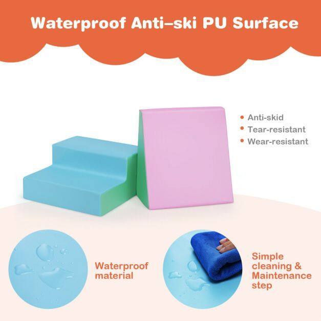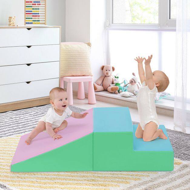 Through the play, babies can develop gross motor skills, hand-eye coordination and gain confidence as they crawl up the steps and slide down the soft wedge.With multiple-color appearance, the foam set may become a captivating addition to any places, such as living room, bedroom and kindergartens. And the compact size and light weight make it convenient for transfer from one room to another.