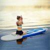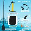 ● Durable and Premium Material: The standing paddleboard is made of double-layer PVC material and V-drop stitch core, featuring high hardness and toughness, sturdy enough for last long time without deformation or air leakage. And the aluminum paddle is height adjustable to meet the different needs of users.