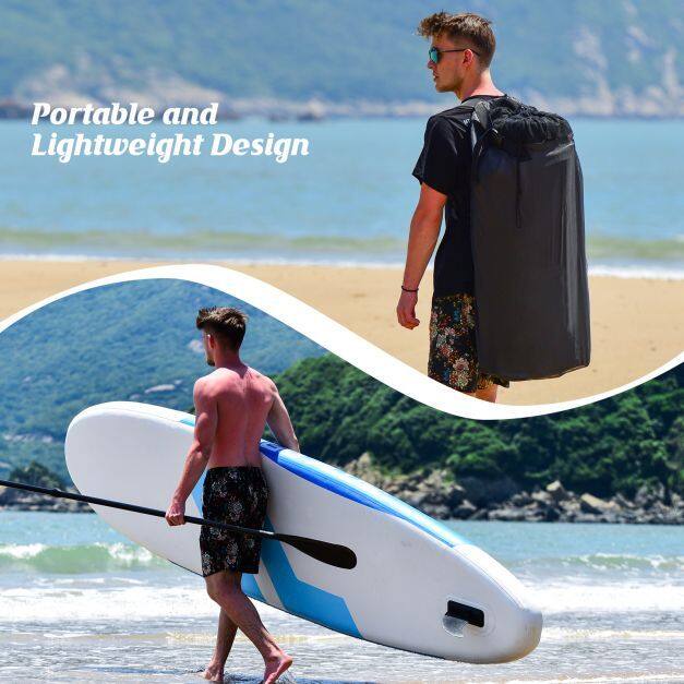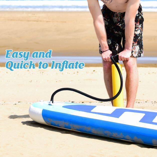 ● Inflatable and Portable Design: The floating paddleboard features a pump with a high-pressure recessed valve which can inflate quickly, and is simple to operate. After inflating, you can carry it conveniently with a handle on board. Besides, the deflated board can be folded into the carrying bag (an adjustable bandage is included), convenient to carry and store.