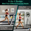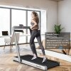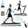 When you are working, it can be used as an under-desk running machine (0.6 - 3mph) which is convenient to keep exercising during working. In addition, the Alexa Home system will help you to control this treadmill by using your voice. And the upper touch screen will feed back your distance, speed, time, pulse, and calories in real-time. Equipped with a powerful motor and shockproof running belt, this premium treadmill avoids disturbing your family while offering a comfortable running experience for you. The shelf is the perfect place to put your phone. Meanwhile, our APP can control this running machine as well. After finishing your exercise, you can fold this running machine for easy storage.
