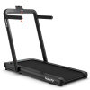 When you are working, it can be used as an under-desk running machine (0.6 - 3mph) which is convenient to keep exercising during working. In addition, the Alexa Home system will help you to control this treadmill by using your voice. And the upper touch screen will feed back your distance, speed, time, pulse, and calories in real-time. Equipped with a powerful motor and shockproof running belt, this premium treadmill avoids disturbing your family while offering a comfortable running experience for you. The shelf is the perfect place to put your phone. Meanwhile, our APP can control this running machine as well. After finishing your exercise, you can fold this running machine for easy storage.