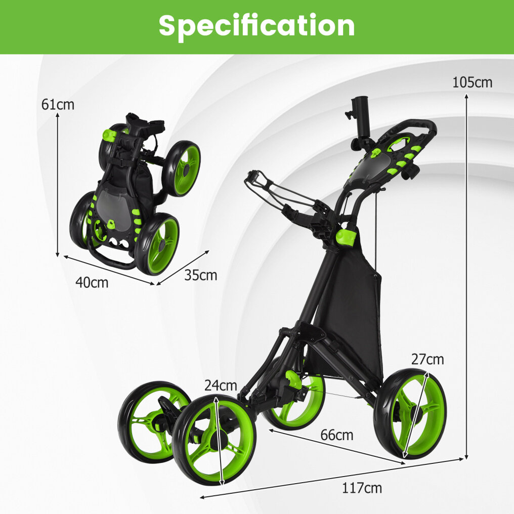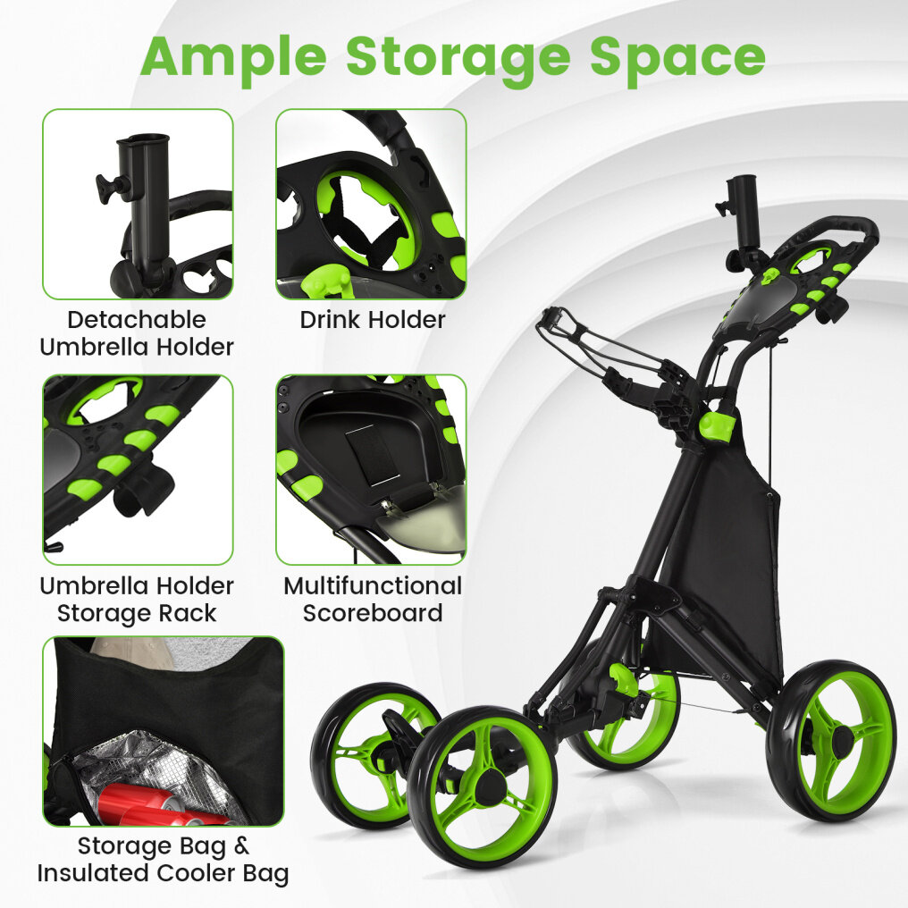 Lightweight Foldable Collapsible 4 Wheels Golf Push Cart-Green