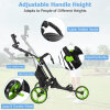 Folding 3 Wheels Golf Push Cart with Bag Scoreboard Adjustable Handle-Green