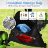 ● Sufficient Storage Space: The functional golf push cart features adjustable umbrella stand that can support the umbrella to avoid direct sun exposure and raindrops. The large capacity storage bag has two layers, the inner bag can be used to place golf equipment, and the outer bag with reflective tin foil coating can hold cold or hot drinks that need to be insulated or waterproofed.