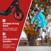 High-Tensile Structure: The T-bar, deck, and wheel core are all made of high-tensile aluminum alloy, ensuring excellent stability, durability, and a large loading weight of 100 kgs. Besides, the strong steel forks and firmly welded neck add more strength and prevent breakage.