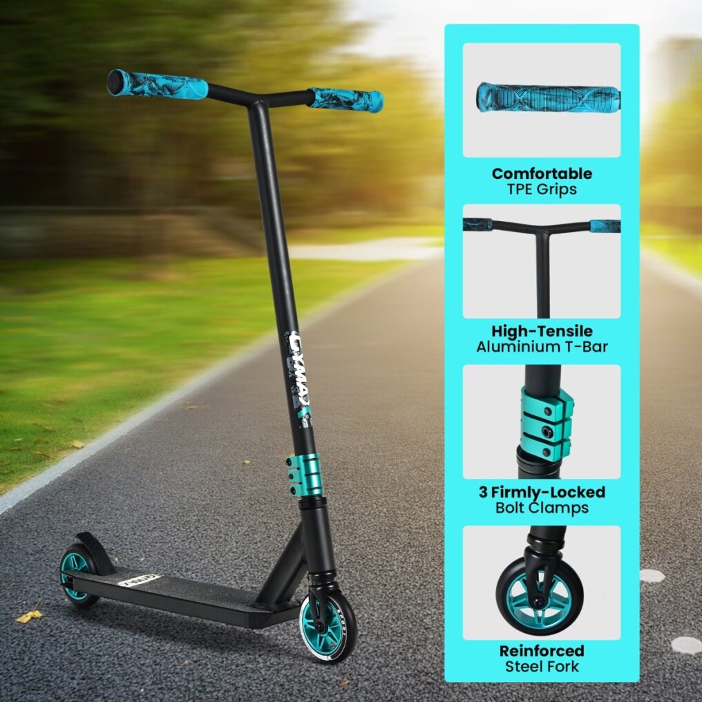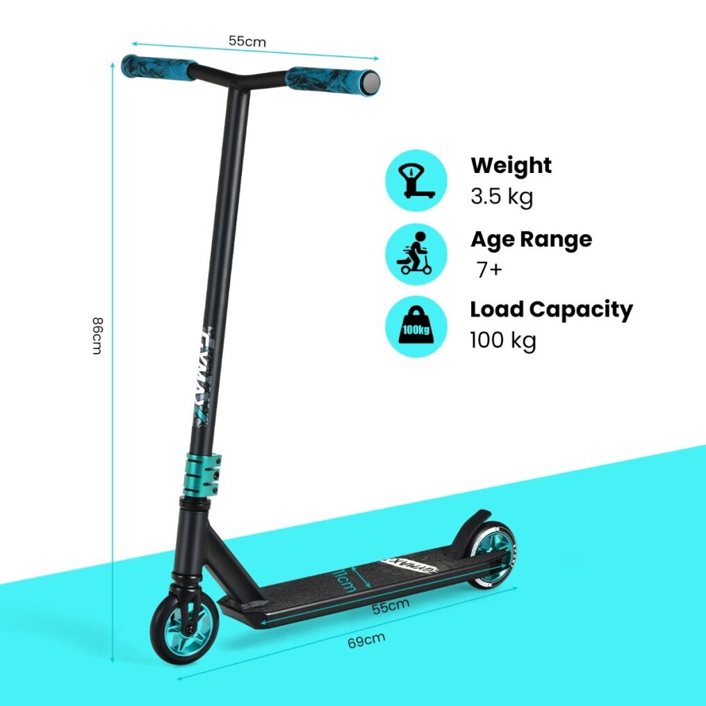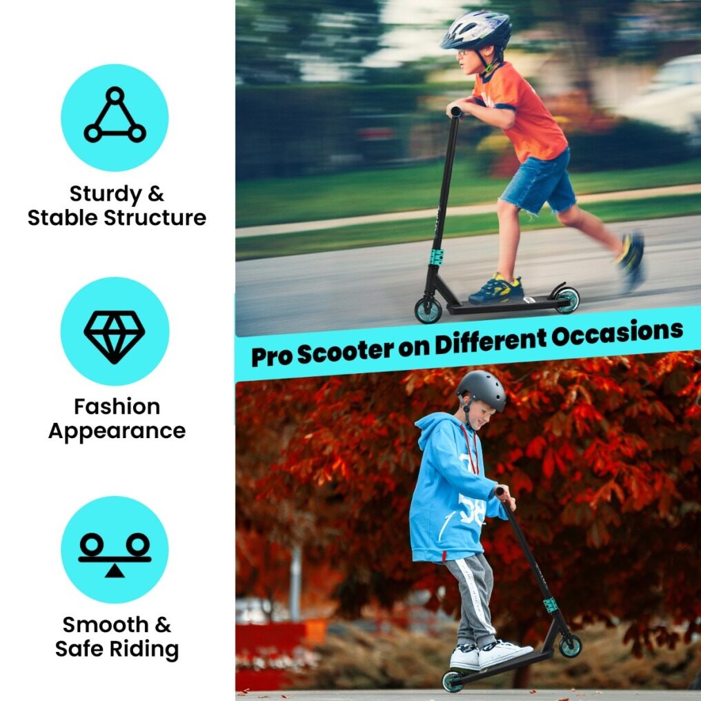 Professional Design for Intermediate and Beginner: This pro stunt kick scooter is suitable for beginners and advanced users to perform cool tricks in indoor or outdoor skate parks for half pipes, rails, stairs, pools, and kickers. It only weighs 3.5 kgs and can load up to 100 kgs, which is perfect for teens and adults aged 7+ to complete complicated stunts such as jumps, grinds, turns, twists, and more.