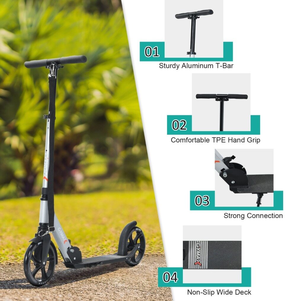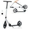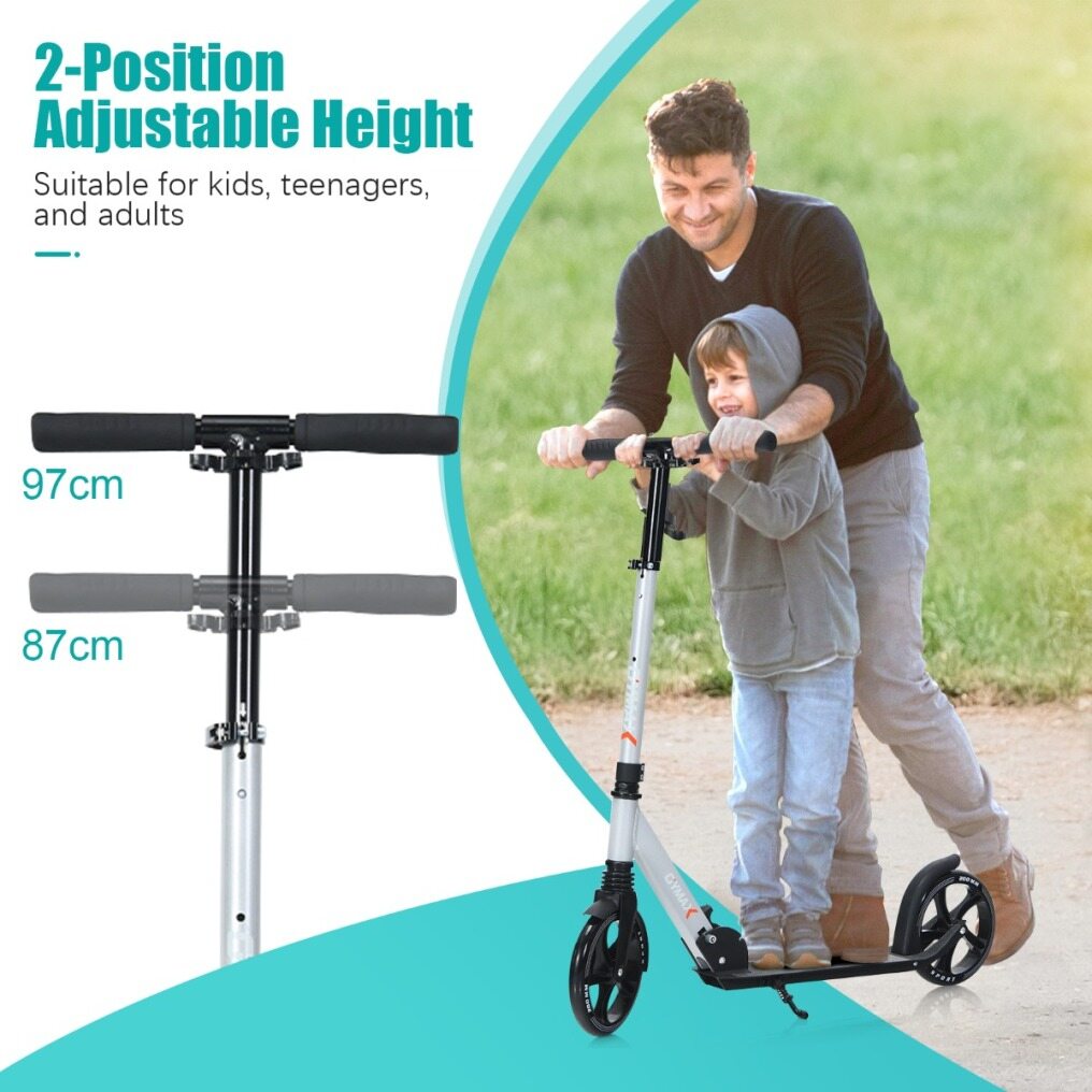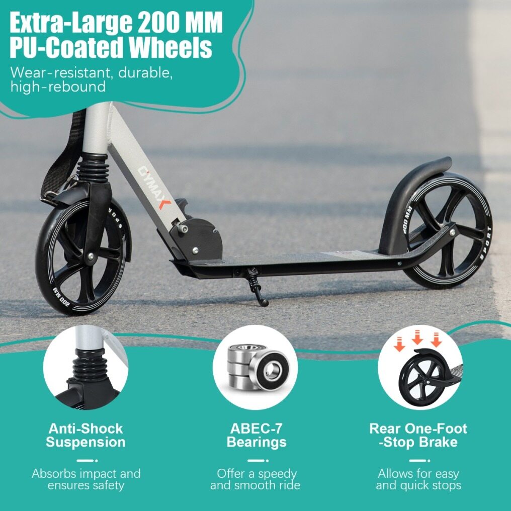 Enjoy a Comfortable and Smooth Ride with this Kick Scooter! The kick scooter can meet your multiple needs, whether cruising with friends, commuting to work, or riding on campus, it can be your best choice. With ultra-large 200 mm PU wheels and high-precision ABEC-7 bearings, it would give you the maximum amount of speed with a good smooth. Besides, the height of the handlebar can be adjusted from 88 cm to 98 cm according to the rider's height and comfort. And the non-slip TPE handle grips provide extra comfort. Moreover, the scooter can also be folded within seconds, and the carrying strap helps you carry it out effortlessly. Thanks to the anti-shock suspension that can effectively absorb impacts, the ride would be more smooth and safer. And the textured non-slip deck is widened for a stable footing and a secure glide. Whether as a birthday gift, Thanksgiving gift, or a Christmas gift, this scooter will be the perfect gift that your kid really wants.