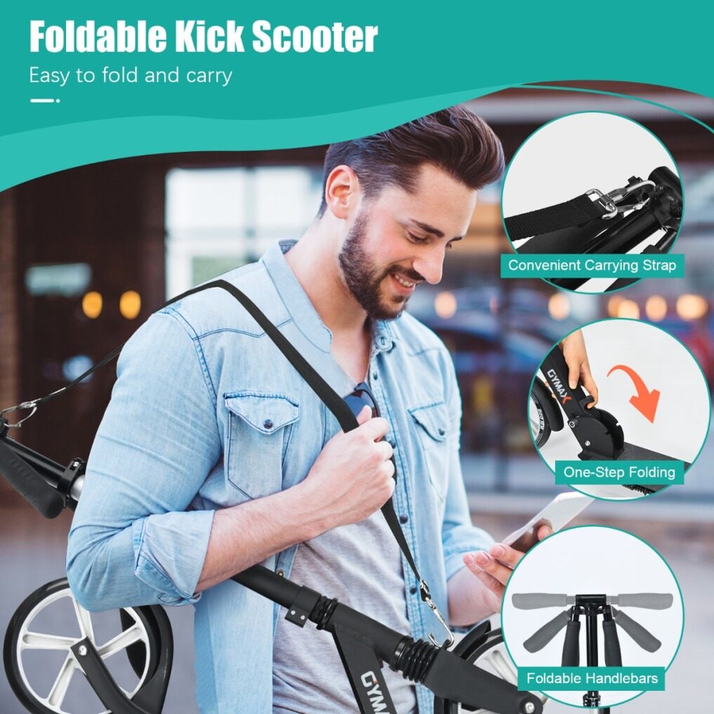 Foldable Design and Easy Carrying: Our folding scooter is designed with a one-step folding mechanism, which can be easily folded and unfolded in seconds. Whether kids, teenagers, or adults, it can be easy to operate. Moreover, it can be folded in a compact size and comes with a convenient carrying strap, so you can carry it out effortlessly.