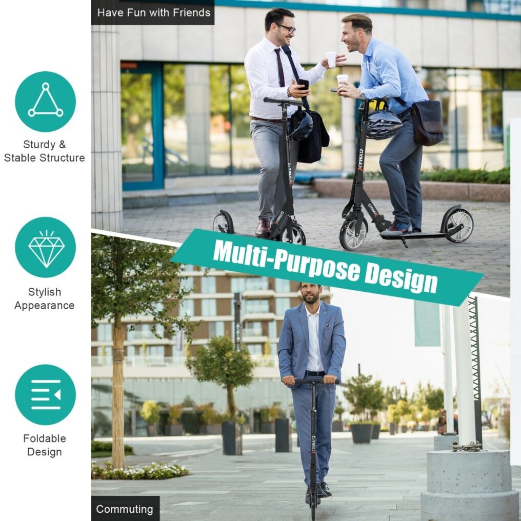 Convenient Stop and Wide Applications: The scooter is designed with a kickstand for parking and resting with ease and a one-foot brake on the rear wheel for easy and immediate stops. It can not but used for sliding with friends in the community, but also for traveling from company to bus station, or riding on campus.