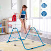 This indoor gymnastics equipment combines a horizontal bar and a basketball hoop, offering endless fun to kids and promoting growth during happy exercise. The gymnastics bar is made of high-quality carbon steel and constructed in a stable triangular structure, which ensures firm support and reliable safety during use. The non-slip foot pads also add extra security. 4-level adjustable height meets kids' needs from 3-12 years old. This horizontal bar is quick to expand and fold, convenient for storage and transport. With step-by-step instructions, the assembly is easy and quick. This home gymnastics equipment is an ideal gift for your kids' birthday or Christmas, developing their motor skills and enhancing muscle strength.