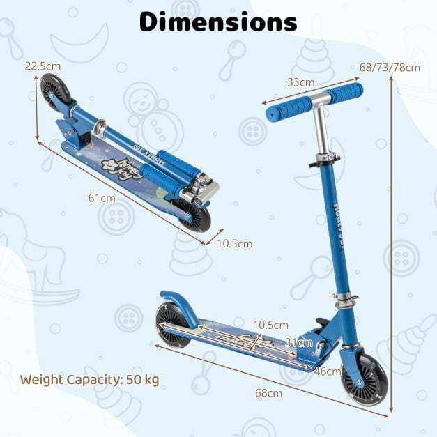 Foldable & Lightweight Design: This kids scooter can be easily folded into a compact size in a few seconds without any tools for easy storage and the handles are also foldable to save more space. Moreover, this lightweight aluminum scooter weighs only 5 lbs, which is easy to carry and transport.