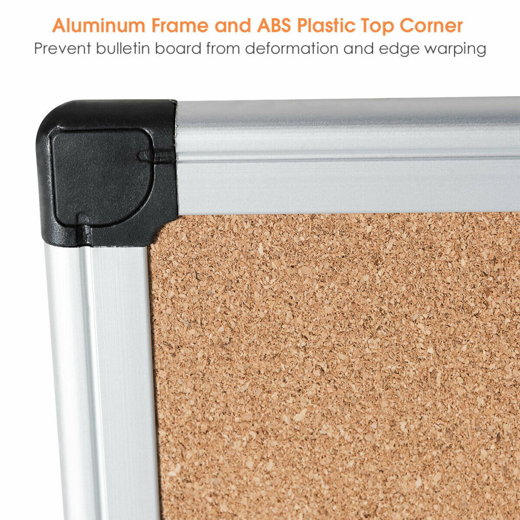 - With a stylish aluminum frame, this bulletin board will complement any setting