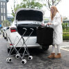 ● Foldable Design for Space Saving: With simple operation, you can fold this grocery cart into a compact size. The folded cart fits into any tight spaces. When you're not using it, leave it in any corner of your home. In addition, the shopping cart is lightweight and can be easily carried when going out and taken to your car trunk.