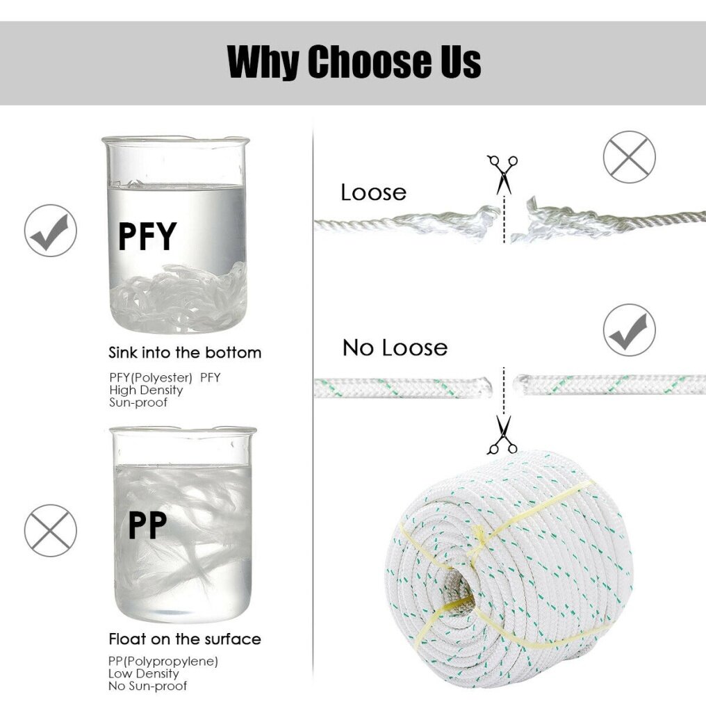 ● Excellent Performance: The entire rope features light weight and practicality, which is convenient to carry and use. In addition, it has great resistance to chemicals, rot, mildew, UV rays and water. The rope with all-around durability fits for a variety of condition and fully meet your needs.