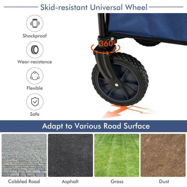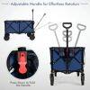 Outdoor Folding Wagon Cart with Adjustable Handle and Universal Wheels-Navy