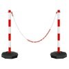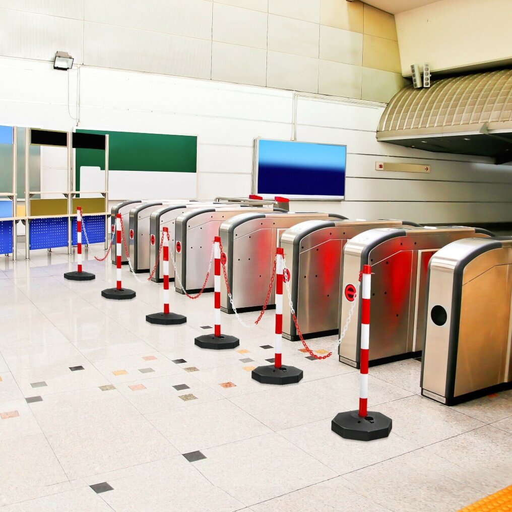 Made from high hardness material, these traffic poles have a long service life and will not easily fade and deform. In addition, the yellow and black color makes it visible to attract people’s attention. As for the fillable base, you can fill water or sand in it for added stability. S-shaped hooks are designed to connect the chains to the holes on the top cap. Moreover, these traffic barriers require no tools or equipment to install, and it can solve all kinds of indoor and outdoor barrier challenges.