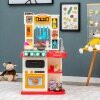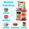 Are you bothered about the children's gift? This multifunctional kitchen play set will be your best choice! Including 65 pieces of accessories, this kitchen toy set meets the different needs of your kids. Children can plan various menus and then cook on the stoves with realistic lights and sounds. The vapour effects and sounds of the range hood running make the cooking more realistic. After playing, the running water allows children to wash dishes or other utensils, and then store or hang on the accessories. The authentic cooking process lets children exercise their imagination, develop practical skills and improve their social ability. So, don't hesitate to choose this educational and lovely kid to pretend kitchen set.