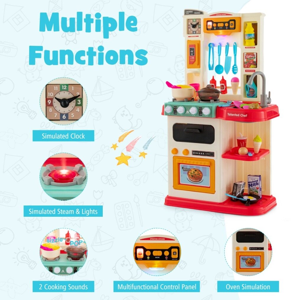 Realistic Kitchen Effects: For a more realistic cooking experience, the stoves can simulate real vapour and features realistic cooking sounds and lights. Besides, the multifunctional range hood will make sounds of running real. The function of children's songs also brings more joy.