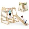 Featuring with monkey bars, gymnastics rings, slide, climbing net and ladder, this indoor jungle gym will provide your kids with plenty of fun and help them grow healthily. The all wood construction and strong screw connections ensure high weight capacity and reliable stability. And the surface of the wooden parts is carefully polished to prevent kids from scratching. This kids indoor climbing playset also comes with a tent, allowing you to transform it into a play house.