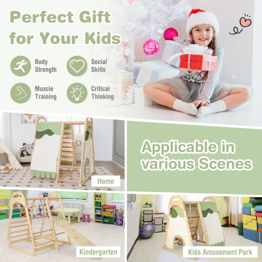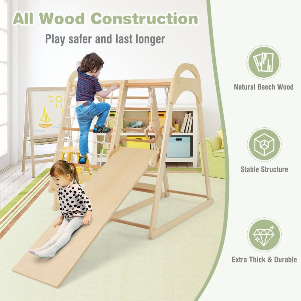 Perfect Gift for Your Kids: This 6-in-1 kids indoor jungle gym will be a great companion during the growth of your kids, which is suitable for kids over 1 year old. This indoor jungle gym allows kids to have fun in a natural style while build body strength, exercise muscles and inspire critical thinking at the same time.