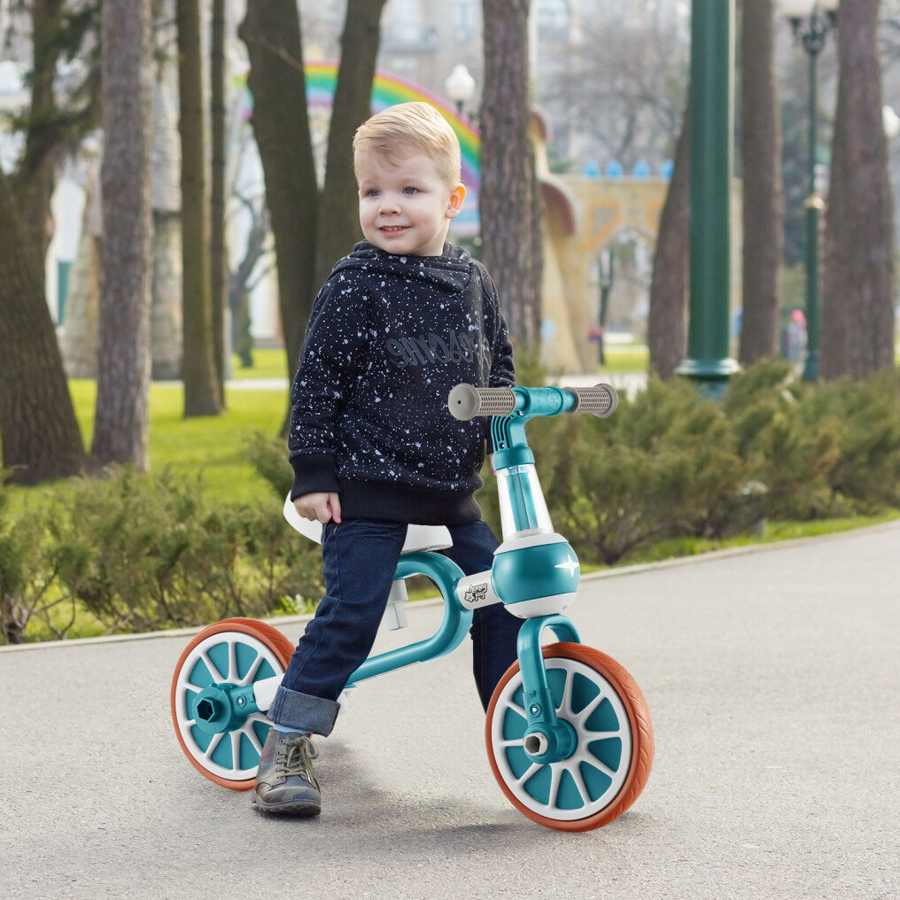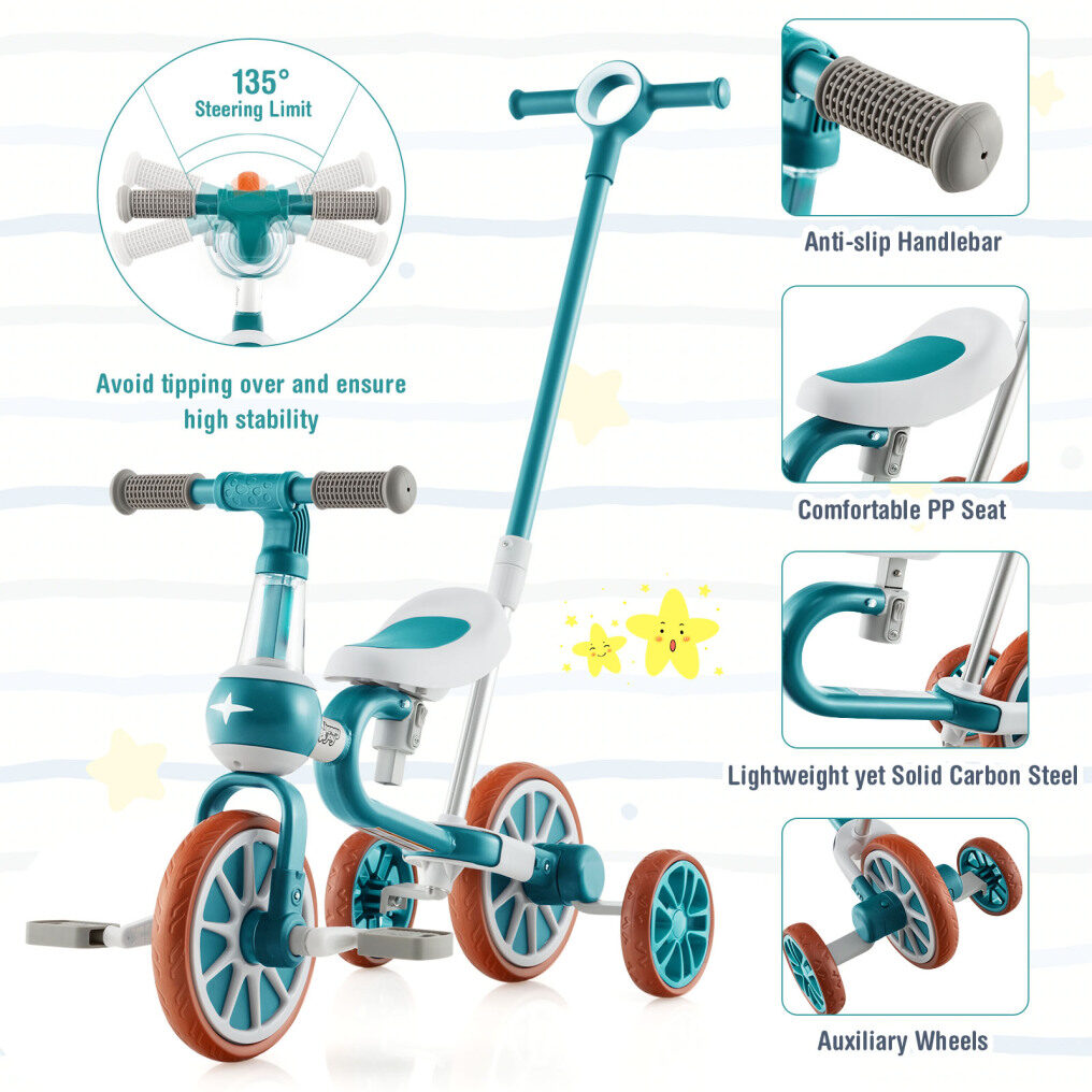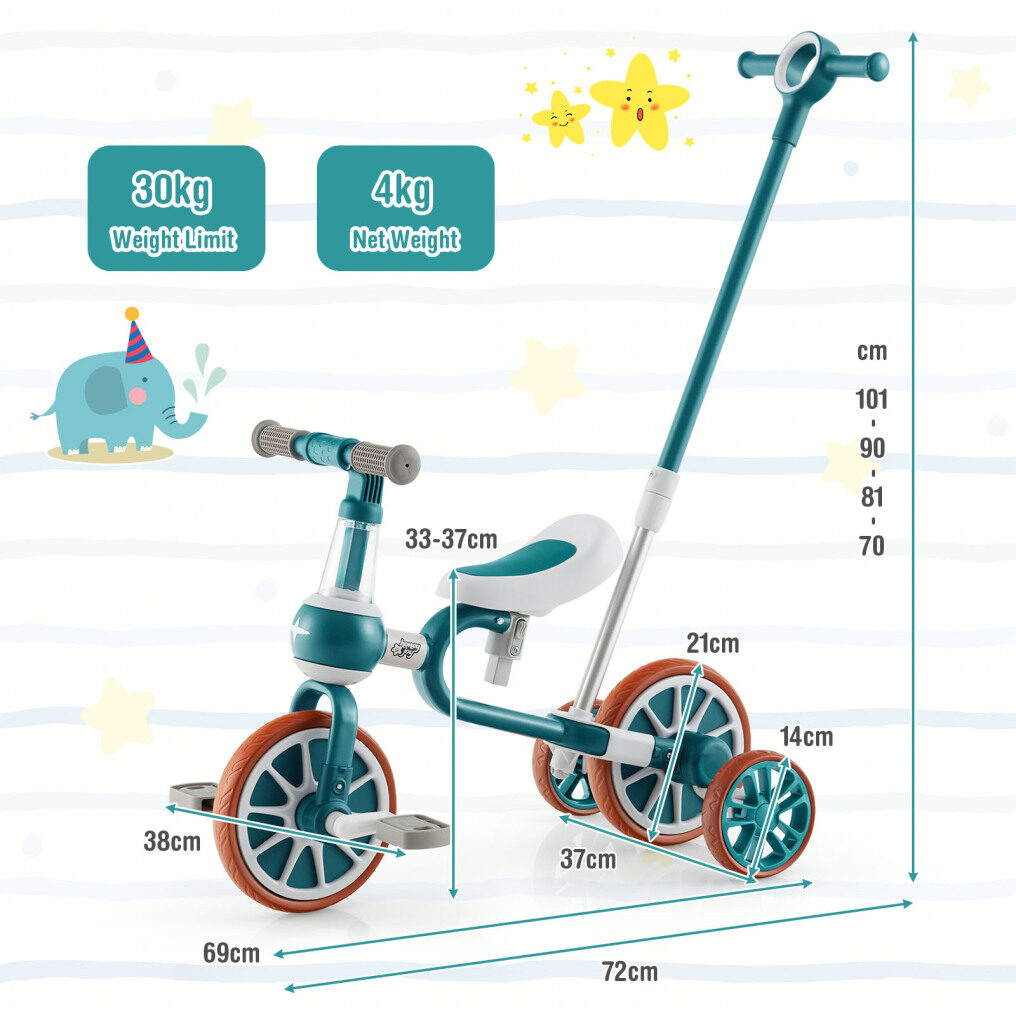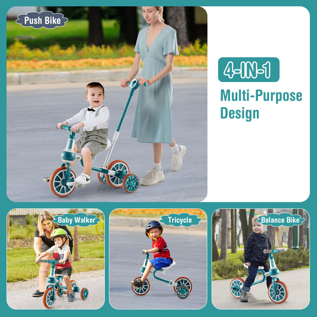 4-in-1 Kids Bike: This versatile kids bike can be converted into 4 modes: ride-on bike, balance bike, pedal bike and push bike. Thanks to the removable parent handle, pedals and training wheels, you can easily switch between the different modes.
