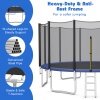 ● Solid Construction: Constructed of heavy-duty galvanized steel pipes with a wear-resistant and rust-resistant zinc layer, the frame of the outdoor trampoline is durable and not easy to fade with a long lifespan. What's more, there exist 6 big U-shaped legs with 12 balanced contact points providing sufficient support and stability.