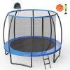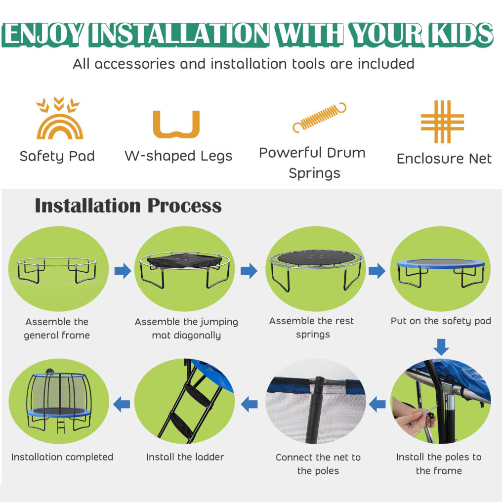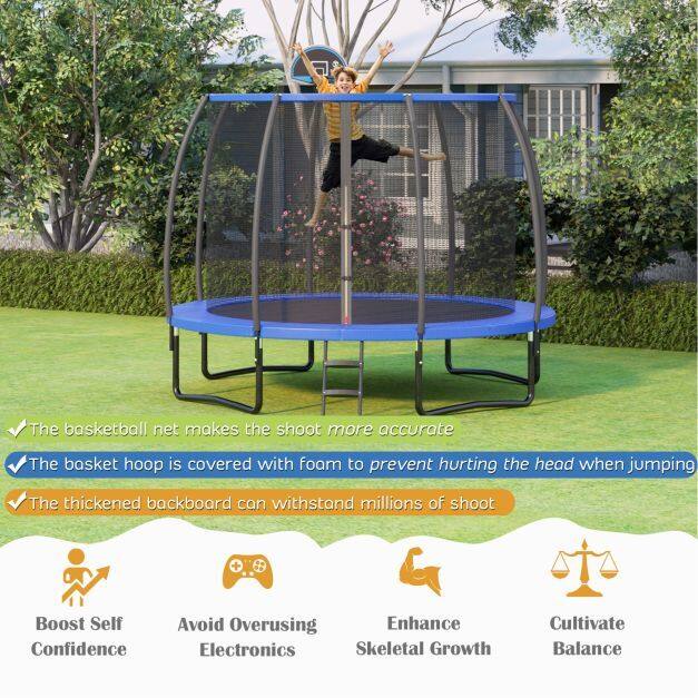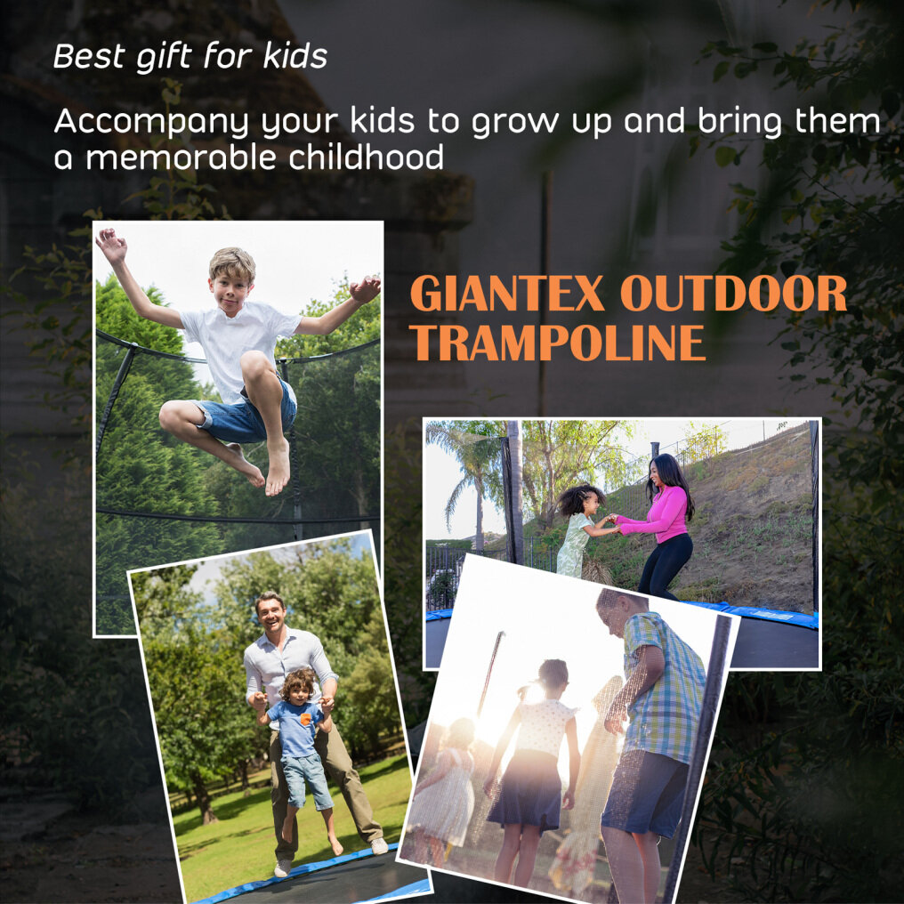 ● Bounce for Happiness and Fitness: This outdoor trampoline will be an ideal gift for birthday and Christmas, which brings children endless fun and memorable childhood. In addition, children can strengthen physical fitness, stimulate body growth and exercise balance ability while jumping. The attached basketball hoop also provides more fun.